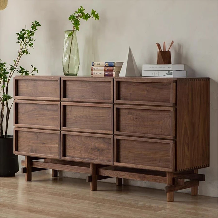 Nordic Black Walnut Dining Sideboard - Minimalist Japanese Kitchen Cabinet for Small Spaces - Elegant Solid Wood Beverage and Storage Cabinet for Dining Room