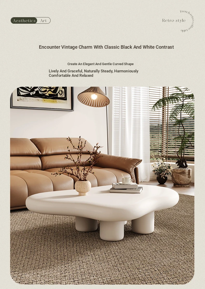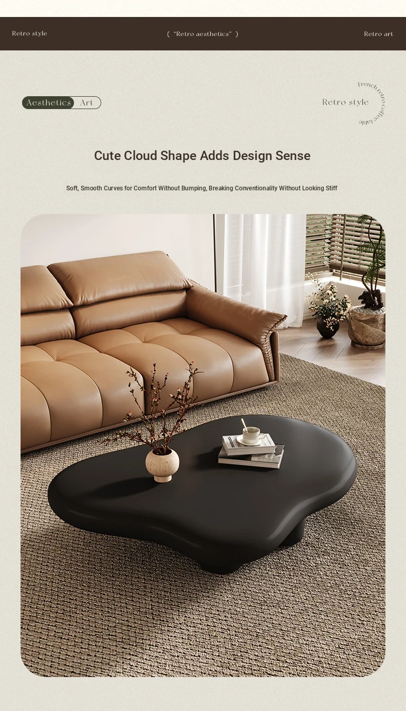Chic French Vintage Cloud Coffee Table - Unique Irregular Design for Small Living Rooms, Perfect Trending Accent Piece for Modern Homes